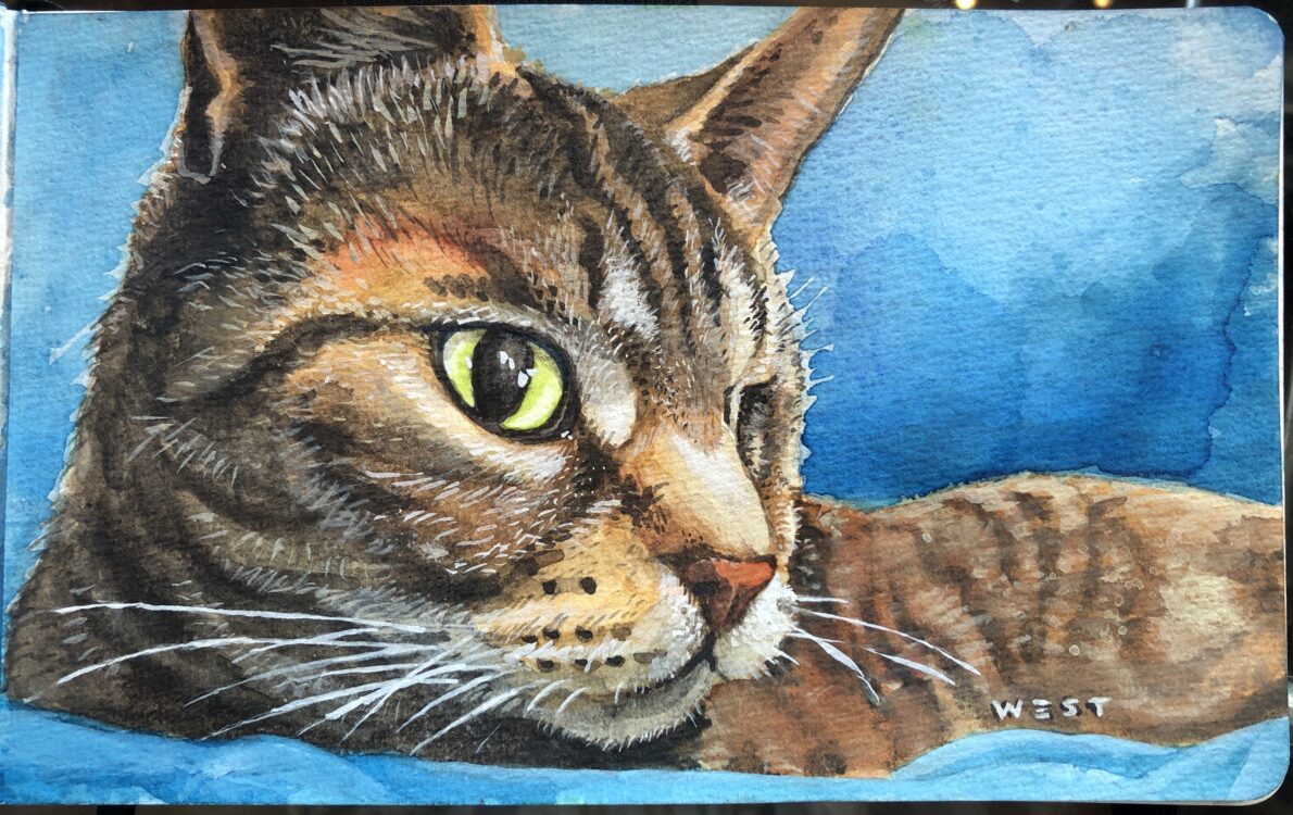 This is a 5×7 watercolor I painted for my buddy Alicia. Uno was an awesome cat!